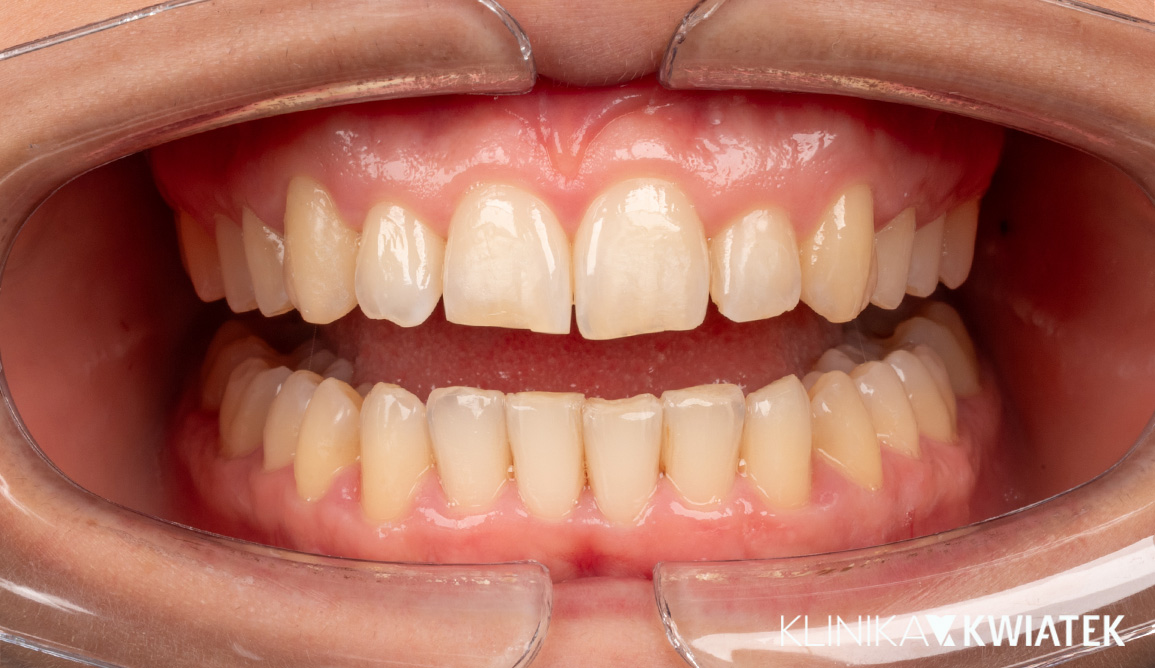 Po 4 latach Pacjent powrócił na wybielanie przypominające i nadal cieszy się promiennym, zadbanym uśmiechem. Regularnie uczęszcza na wizyty kontrolne i higienizacyjne.