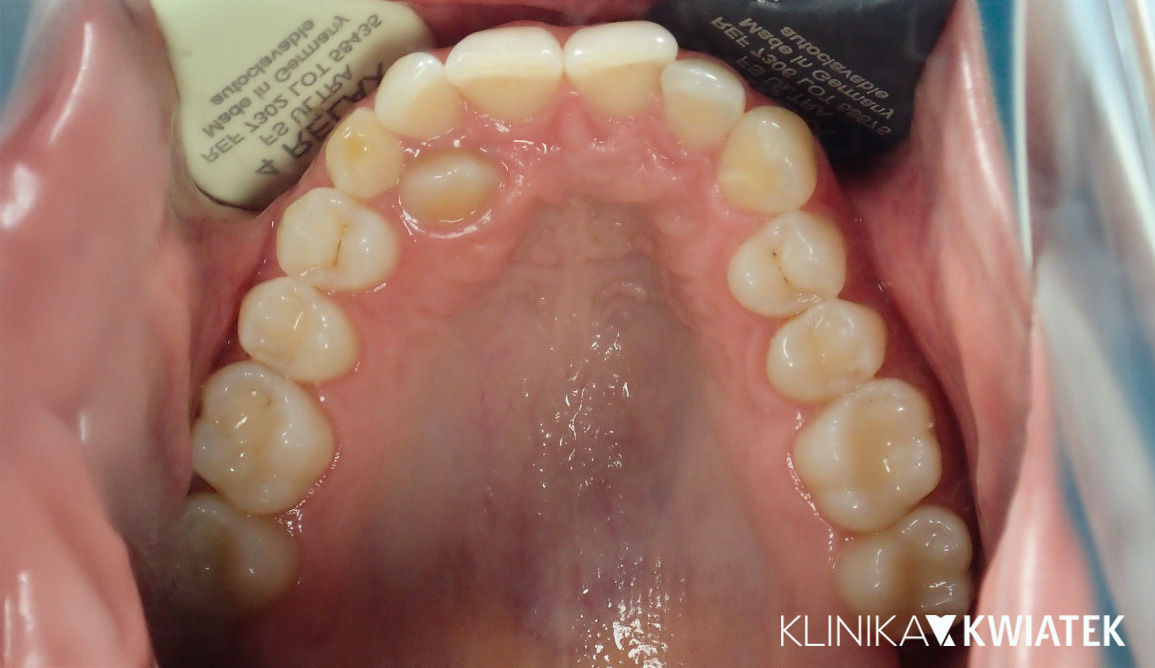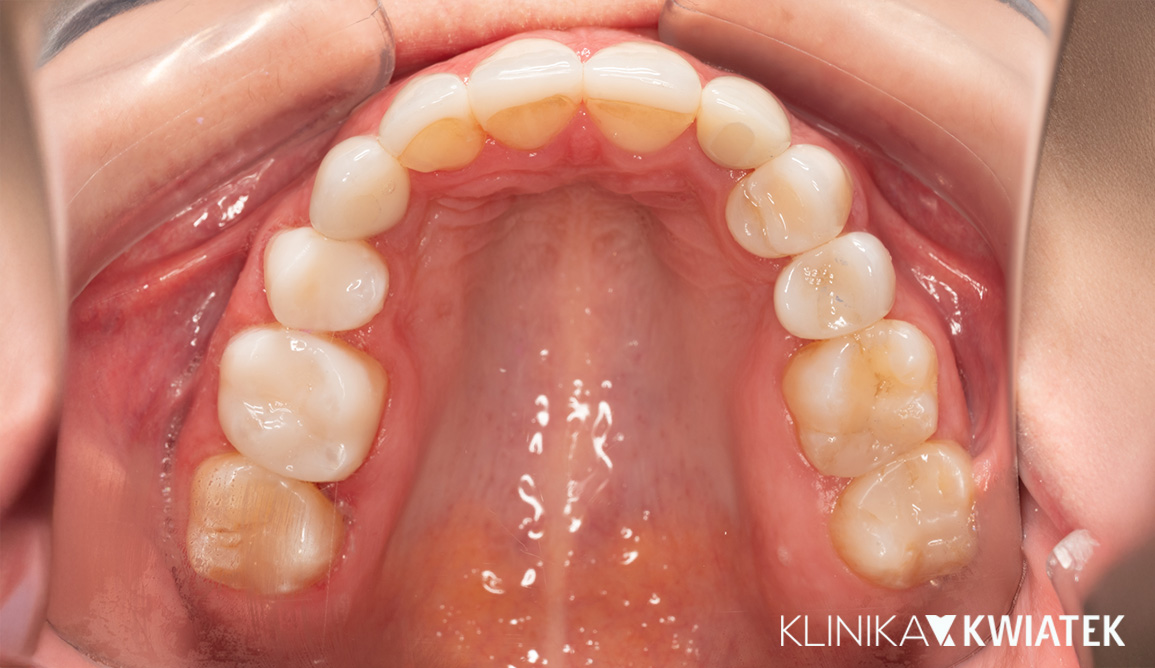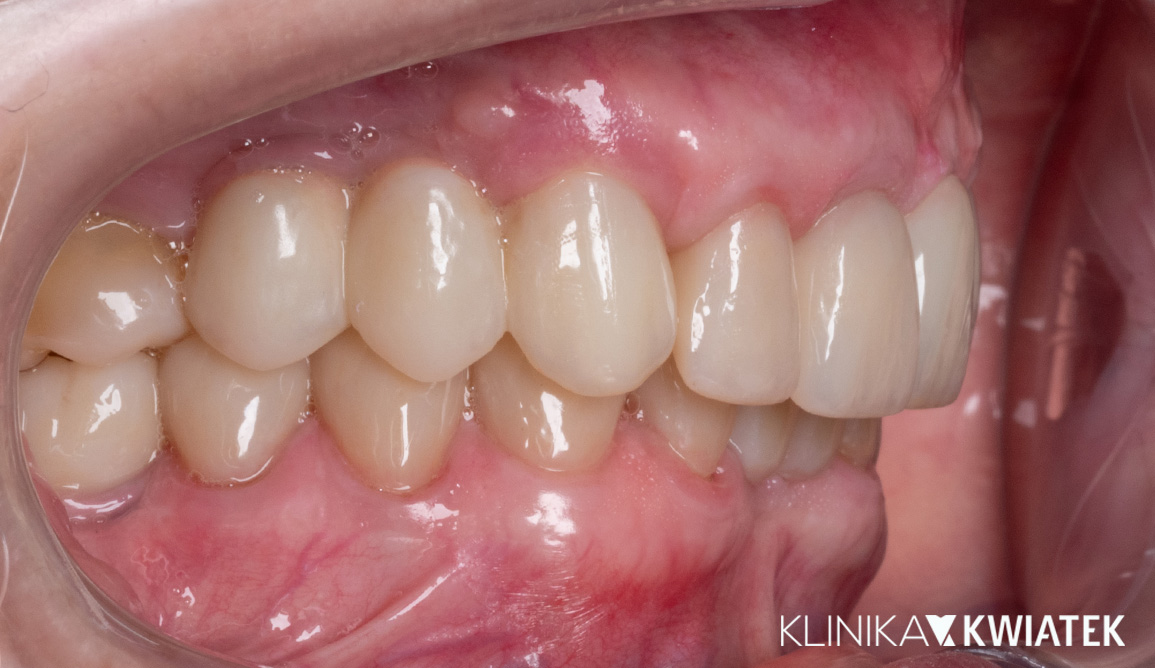 W trakcie leczenia korzystała także z fizjoterapii stomatologicznej, co pomogło zoptymalizować pracę stawów skroniowo-żuchwowych i mięśni żucia.
