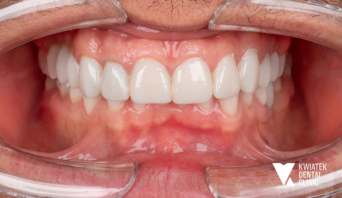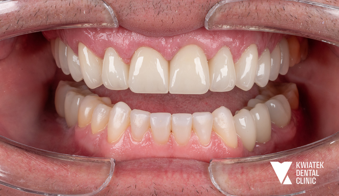 Efekt to stabilne zwarcie, harmonijna linia dziąseł i naturalna, pełnoceramiczna estetyka. Nie korekta. Precyzyjna rekonstrukcja.