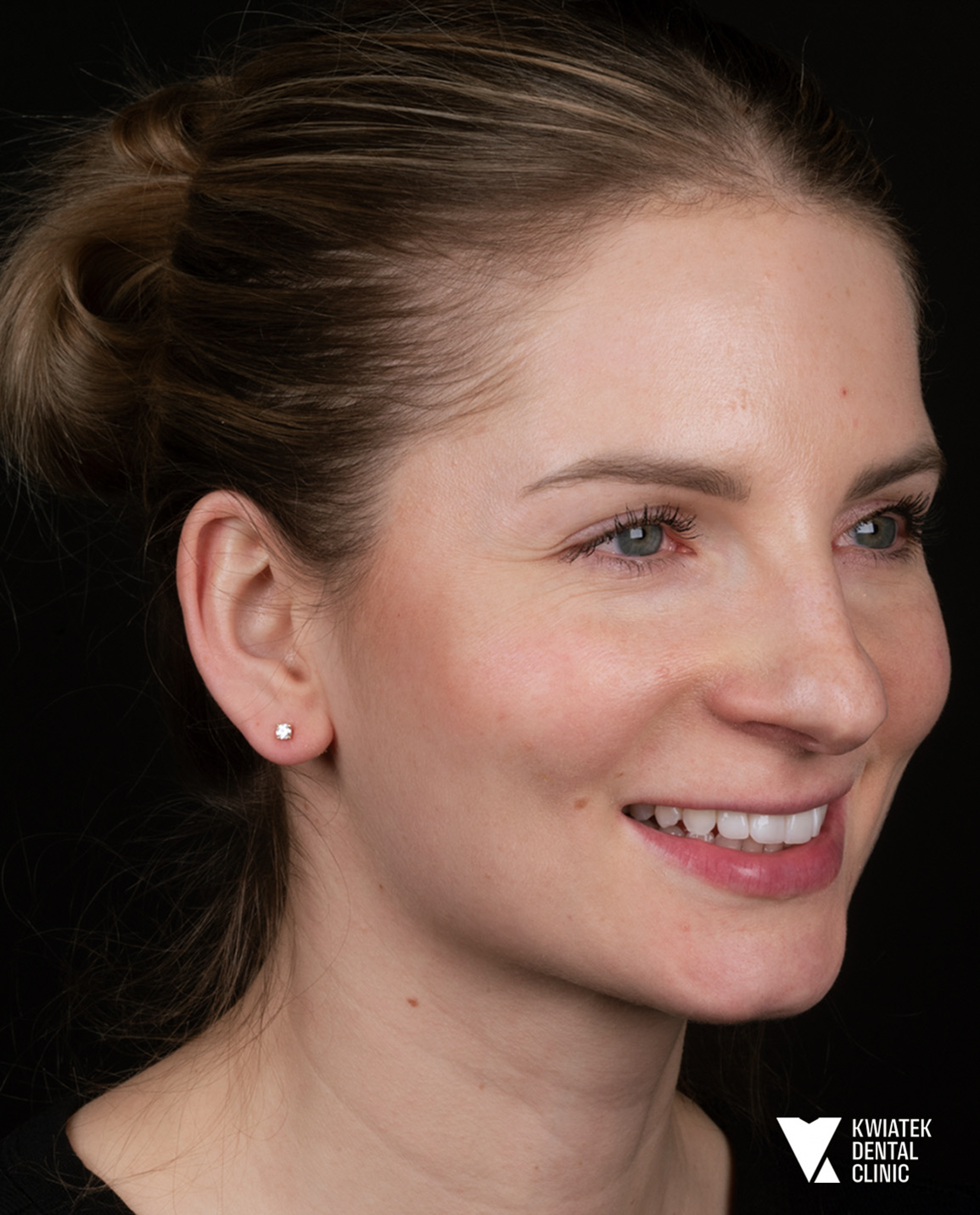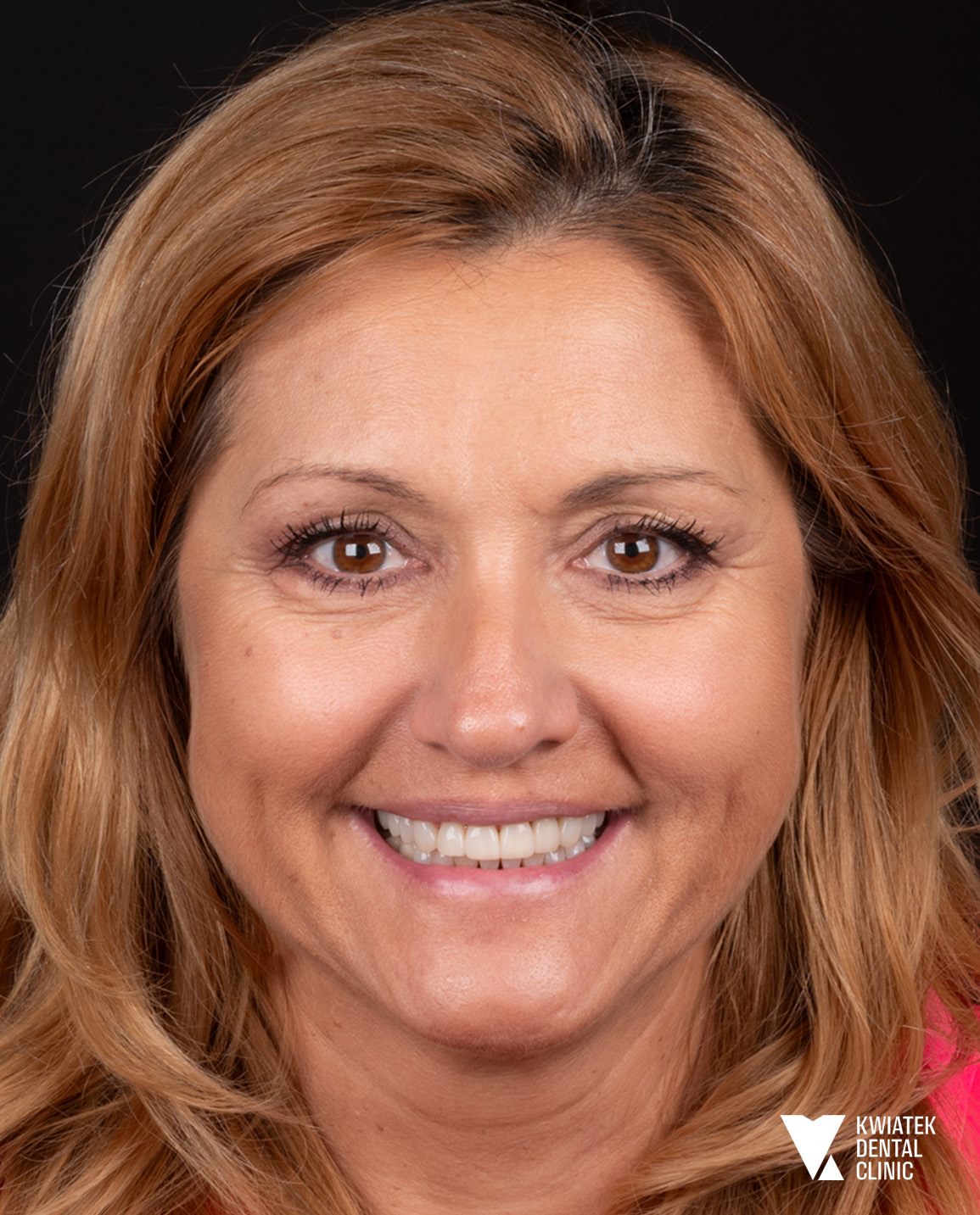 Efekt końcowy? Naturalna estetyka, piękny uśmiech i komfort, który daje Pacjentce pełną satysfakcję.