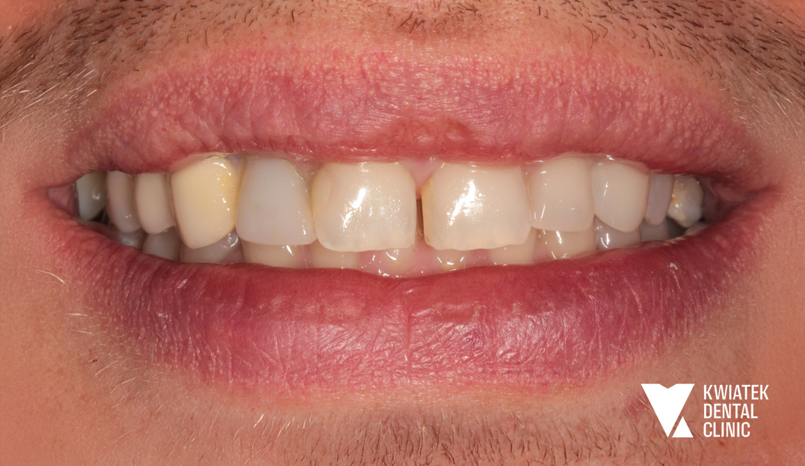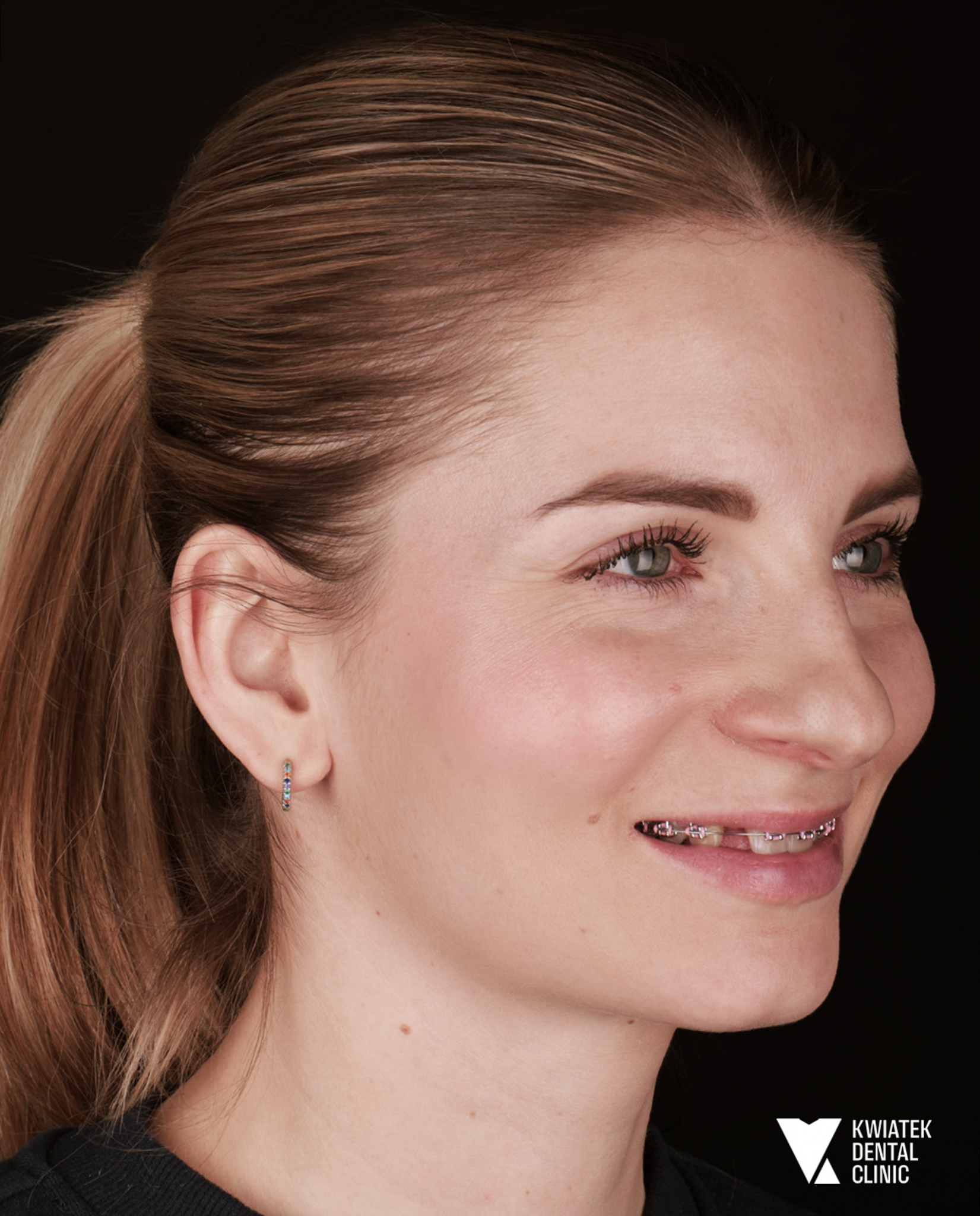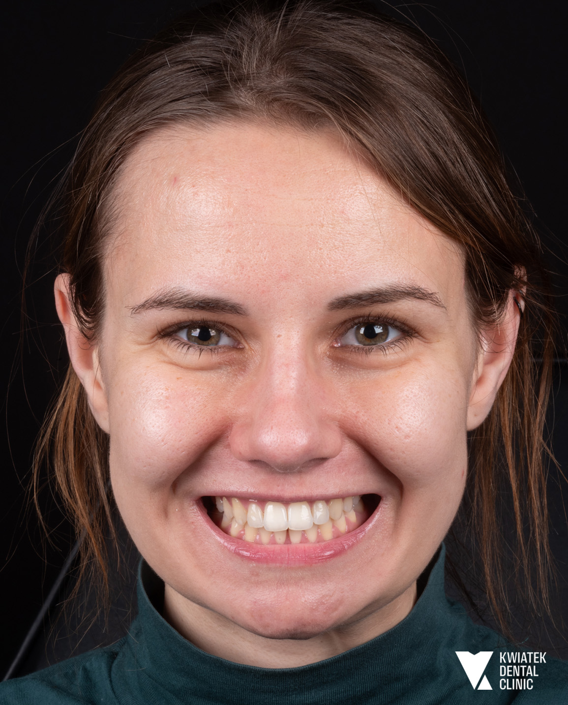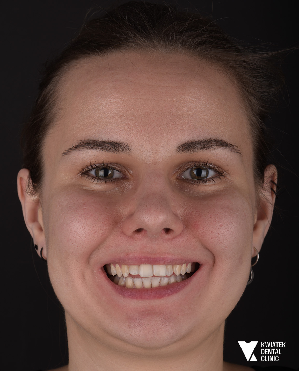 Postawiliśmy na kompleksowe podejście – połączyliśmy leczenie ortodontyczne, implantologiczne oraz protetyczne. Dzięki temu udało się uzyskać harmonijny, pełen blasku uśmiech oraz prawidłowe warunki zgryzowe.