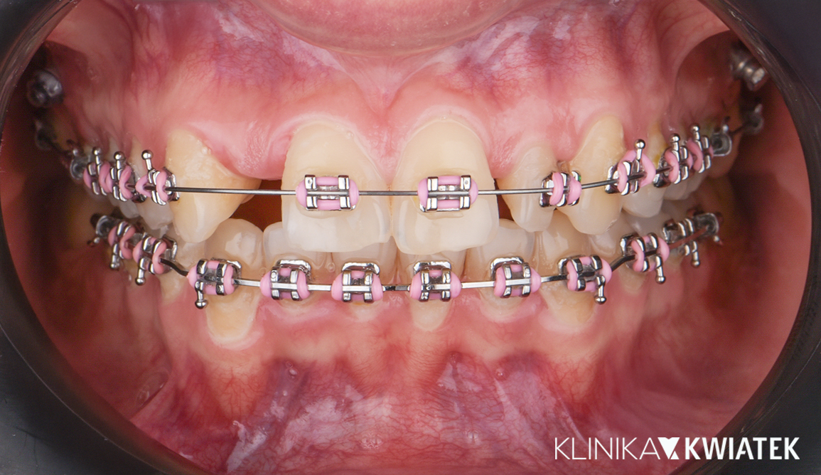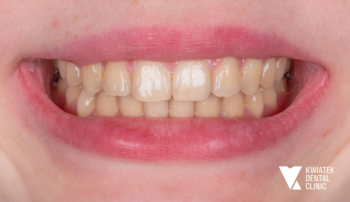 Do naszej kliniki zgłosiła się Pacjentka, która w przeszłości była już leczona ortodontycznie. Mimo wcześniejszego leczenia wciąż zmagała się z brakiem górnej dwójki oraz przesuniętą linią pośrodkową, co wpływało zarówno na estetykę uśmiechu, jak i na prawidłową funkcję zgryzu.