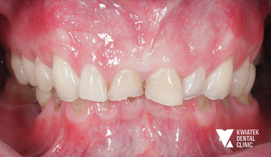 Pan Jakub zgłosił się do kliniki z wadą zgryzu oraz licznymi problemami wynikającymi z nieprawidłowego ustawienia zębów. Leczenie wymagało współpracy specjalistów z kilku dziedzin stomatologii, precyzyjnego planowania oraz konsekwentnej realizacji kolejnych etapów terapii.