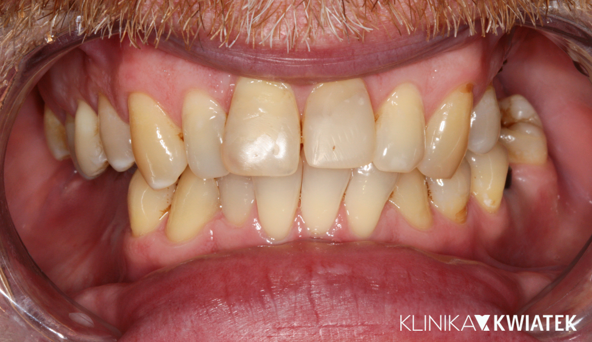 Pacjent przez wiele lat unikał wizyt u dentysty z powodu silnego lęku. Strach przed leczeniem sprawił, że w jamie ustnej pojawiły się rozległe zmiany próchnicowe i liczne zęby wymagały ekstrakcji.