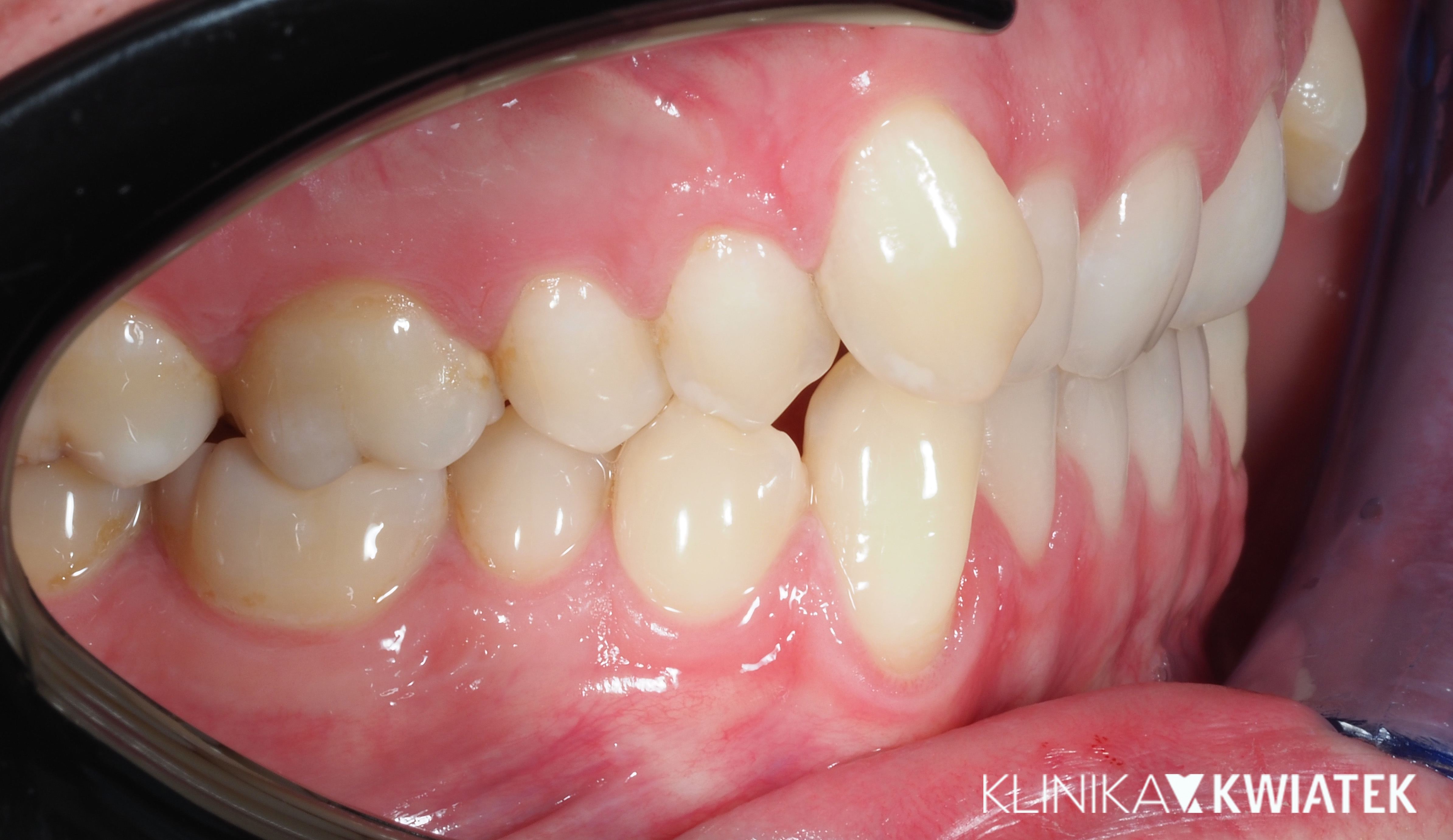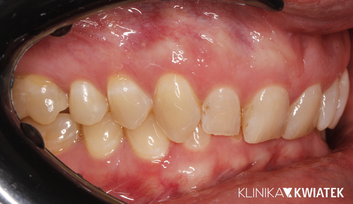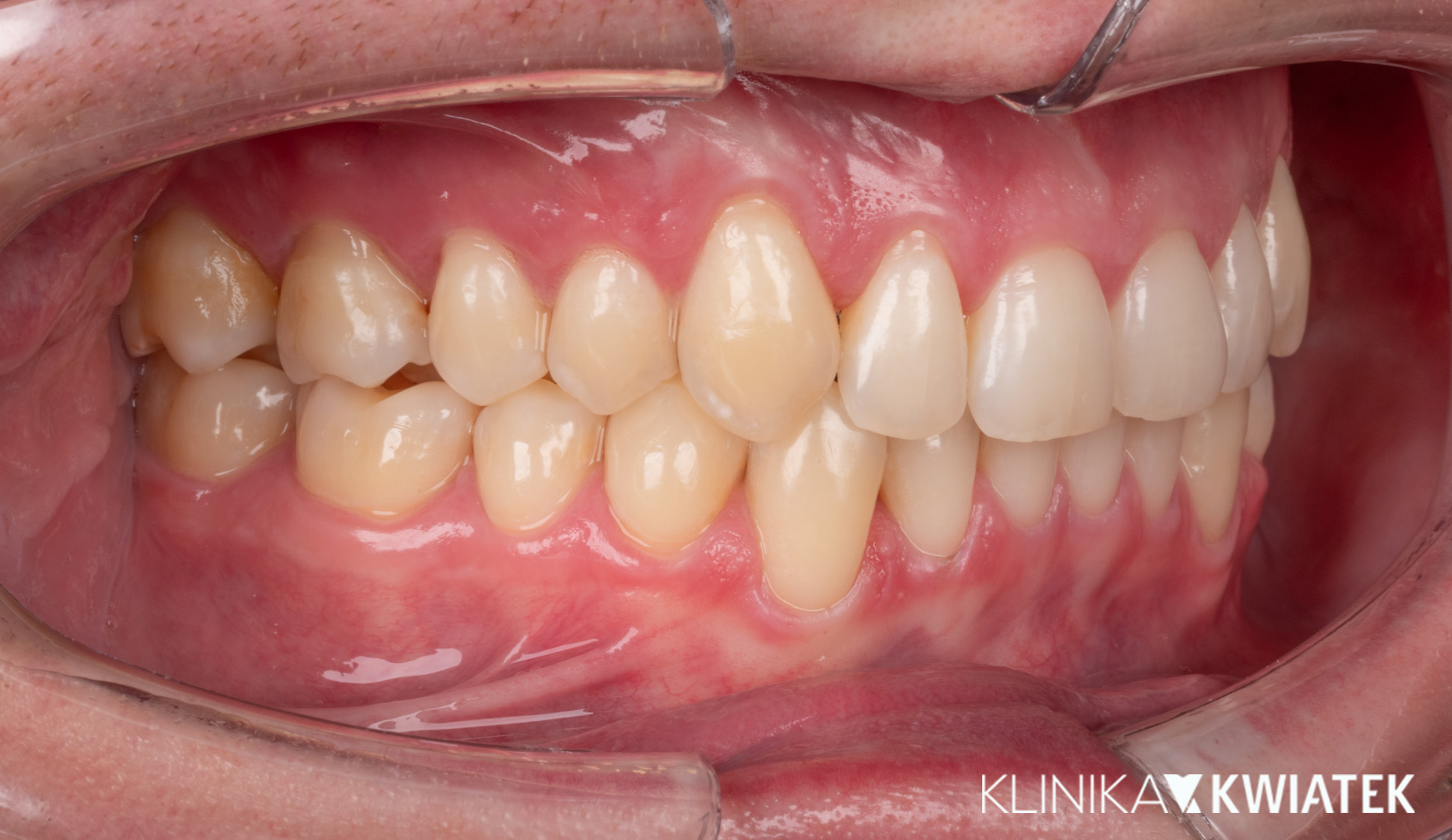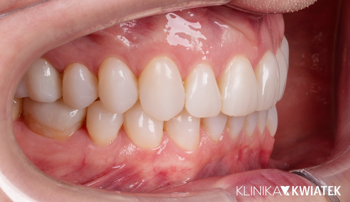 Pacjentka zgłosiła się z powodu napięć mięśniowych, zgrzytania zębami i dolegliwości ze strony stawów skroniowo-żuchwowych. Rozpoczęto terapię od szyny relaksacyjnej i fizjoterapii, a następnie wdrożono leczenie ortodontyczne oraz kompleksową odbudowę protetyczno-estetyczną. Efekt końcowy to nie tylko zdrowy zgryz i brak dolegliwości bólowych, ale także piękny, naturalny uśmiech.