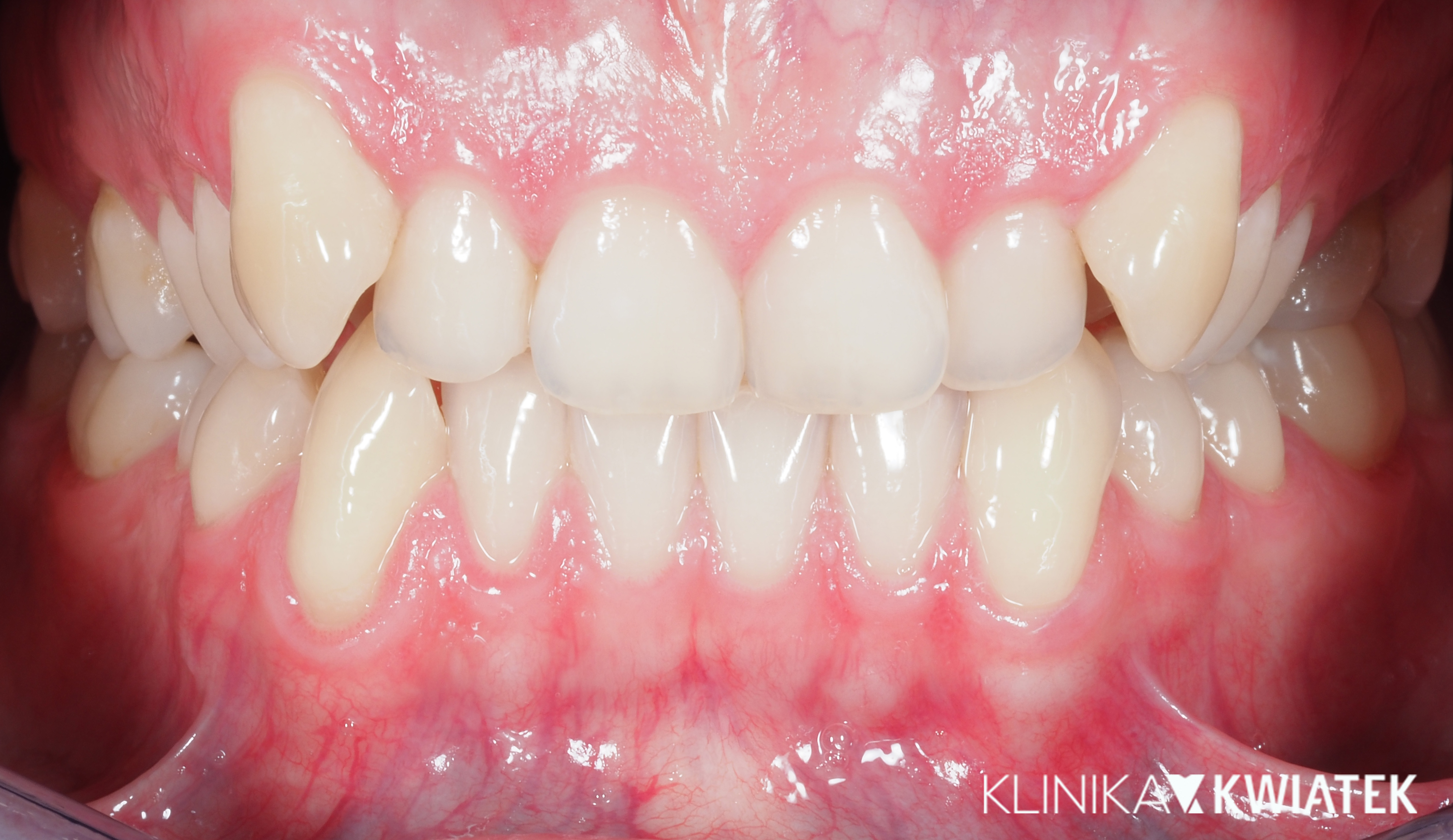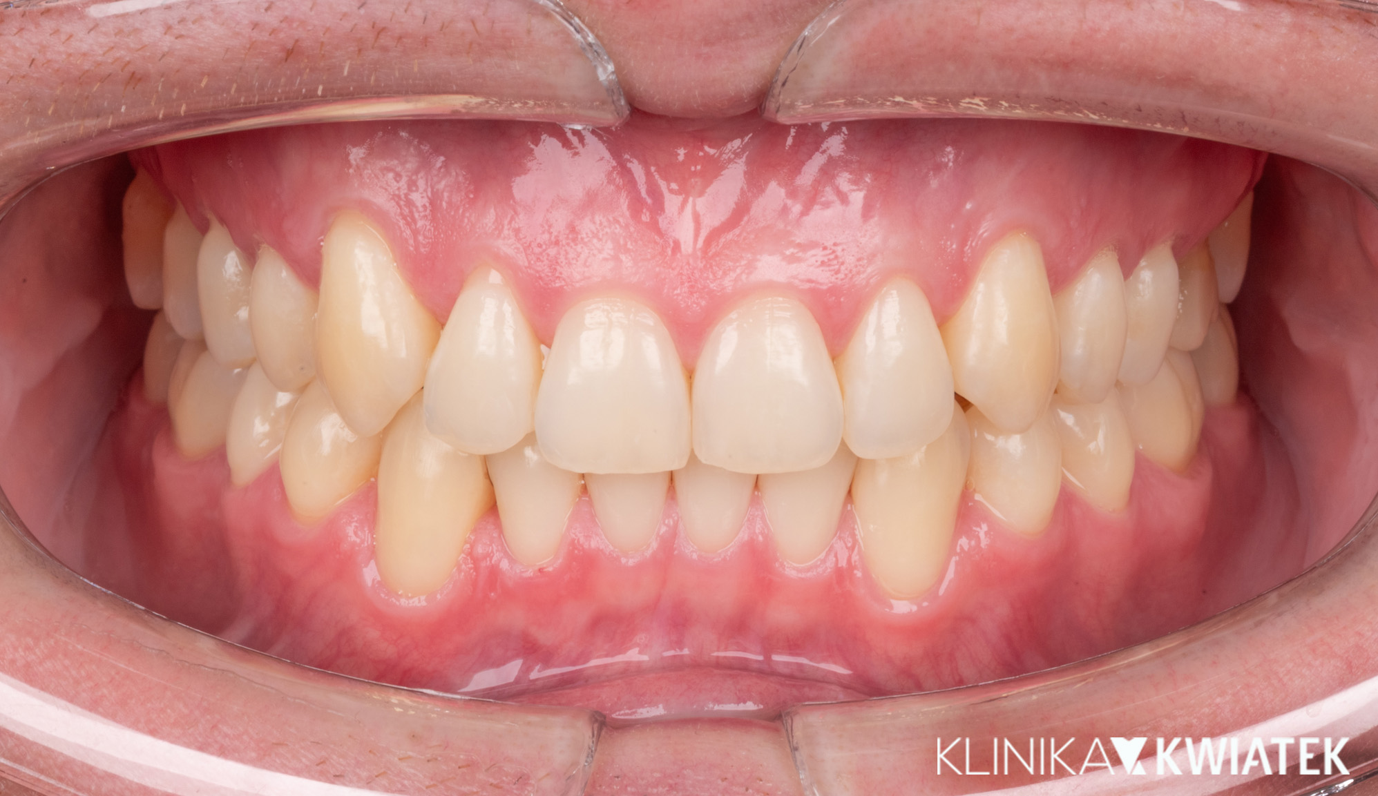 Pacjentka zgłosiła się do kliniki z powodu zużytych, nieszczelnych licówek oraz narastającej nadwrażliwości zębów przednich. Po szczegółowej diagnostyce wdrożono indywidualny, kompleksowy plan leczenia obejmujący leczenie zachowawcze, chirurgiczne, endodontyczne i protetyczne. Efektem była pełna metamorfoza estetyczna oraz stworzenie eleganckiego, naturalnego i trwałego uśmiechu.