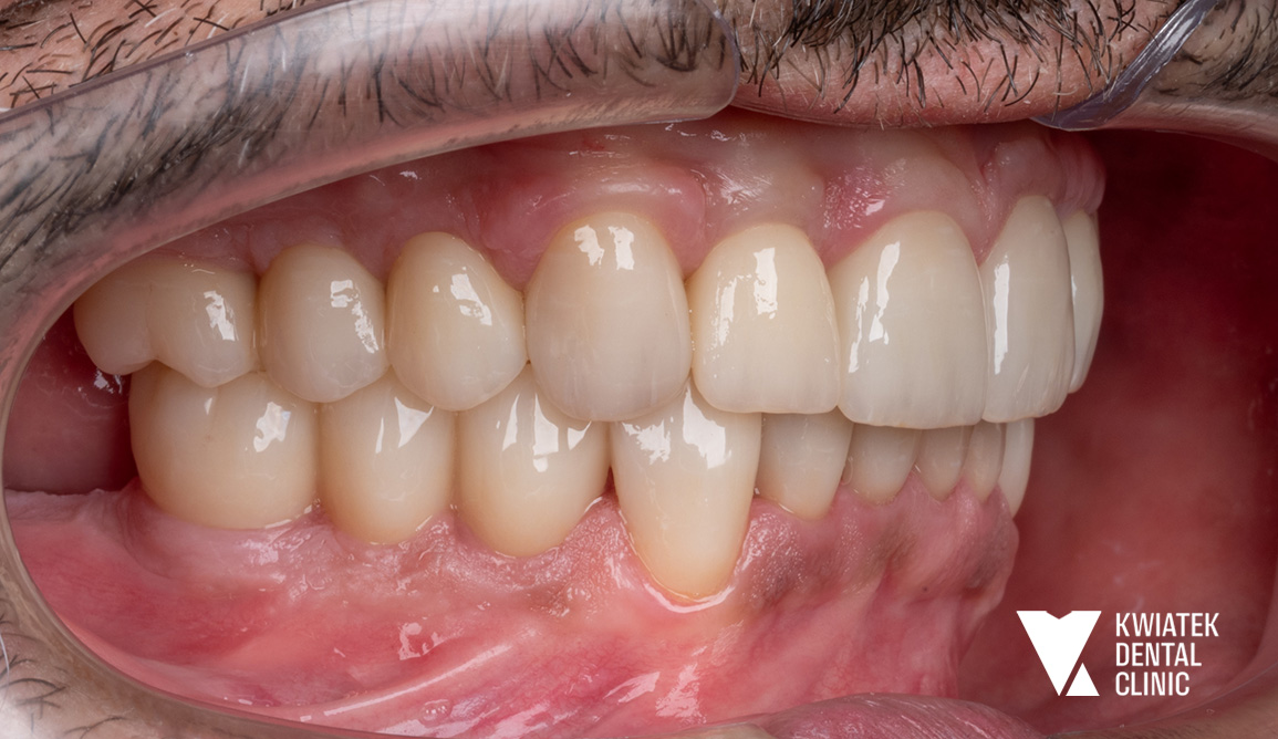 Kompleksowe podejście pozwoliło przywrócić Pacjentowi pełen komfort i estetyczny uśmiech oparty na solidnych, nowoczesnych rozwiązaniach stomatologicznych.